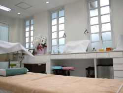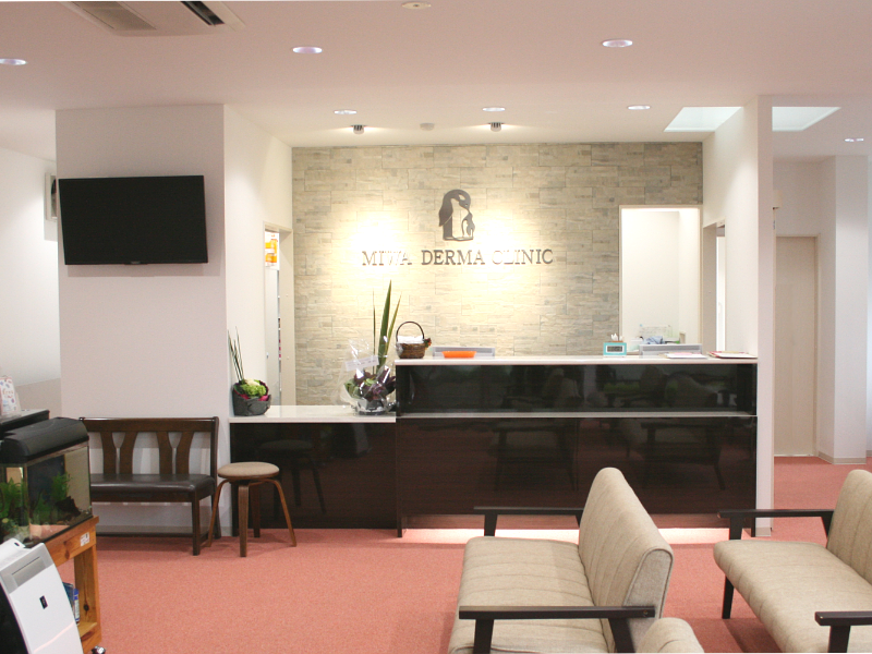 入り口の自動ドア を開けたら、正面奥の受付へお進みください。笑顔でお迎えいたします。お肌のお悩み解決しましょう!