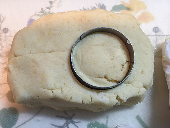 3.まな板の上で厚さ3〜4センチに平らにして型で抜きます。型がなければ、包丁で四角や三角にカットしてもよいです。