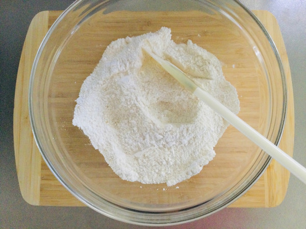 1.米粉、アーモンド粉、メープルシュガー、ベーキングパウダーをボールで混ぜます。