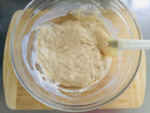4.1のボールに、潰したバナナ、米油、豆乳を加えてよく混ぜます。