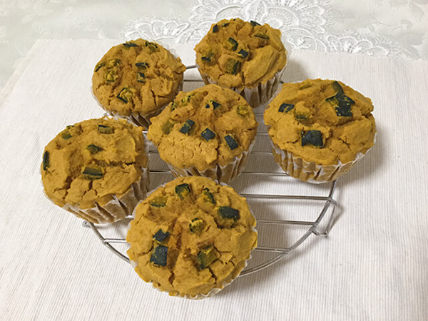米粉の焼き菓子には、パサパサしていて冷めると固くなる、という問題がありますが、かぼちゃをたっぷり使っているのでしっとりと仕上がります。
