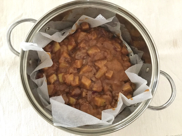 サツマイモの角切りを小麦粉の生地でつなぎ、蒸したお菓子です。