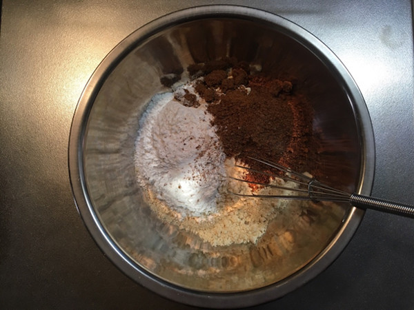 1.大豆粉、米粉、アーモンド粉、ココナッツシュガー、ベーキングパウダーをボールでよく混ぜます。泡だて器を使うとよく混ざります。