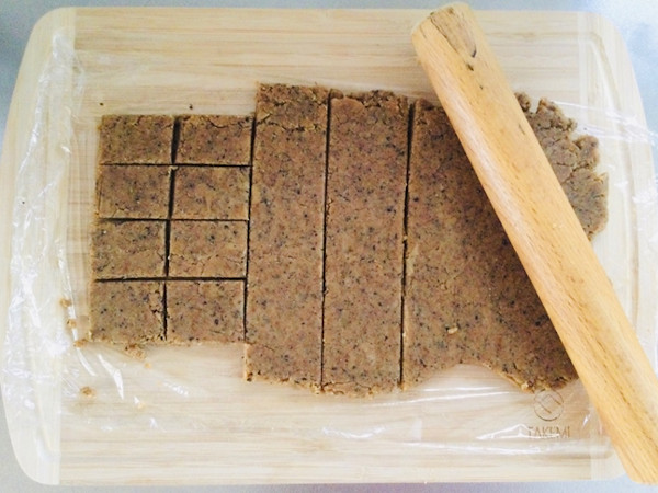 3.まな板にラップを敷いて生地を伸ばし、好きな大きさにカットします。