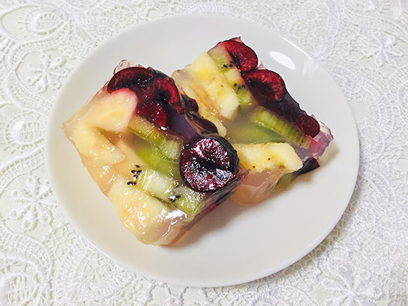 テリーヌは、お野菜をコンソメゼリーで固めたお料理ですが、生のままのフルーツを具材にして応用すると、簡単なデザートになります。