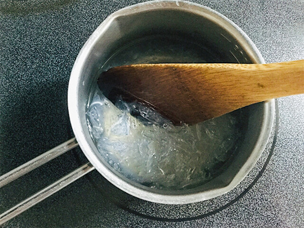 1.小鍋に寒天と水を入れ温め、沸騰したら弱火にして完全に溶かします。(粉寒天はそのまま、棒寒天は30分程水でふやかしてからよく水切りをして、細かくちぎって入れます)その後、はちみつを加えて溶かし、火を止めてレモン汁を加えます。