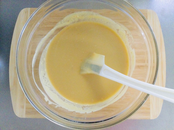 2.溶かしたバター、ココナッツミルクを加えて混ぜます。
