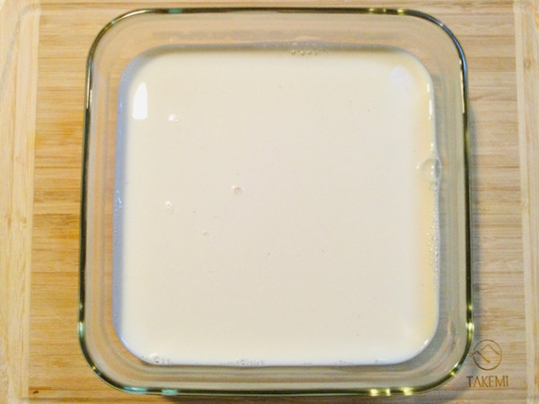 2.はちみつが溶けたら火を止め、ふやかしたゼラチンを加えて混ぜ、なるべく平たい容器に移して粗熱をとり、冷凍室で冷やします。