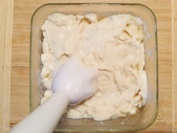 3.スプーンが入るギリギリくらいに凍ったら、良くかき混ぜて完成です。ブレンダーなどで混ぜるとよりクリーム状になります。