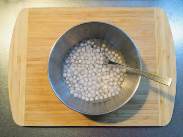 1.タピオカをさっと水洗いしたら、強火で4〜5分ゆでて柔らかくし、冷水で冷やします。