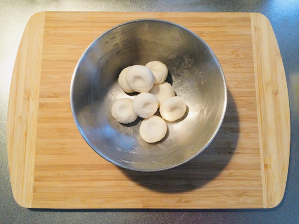 2.お好みの大きさに丸めて真ん中を押して平たく成形します。