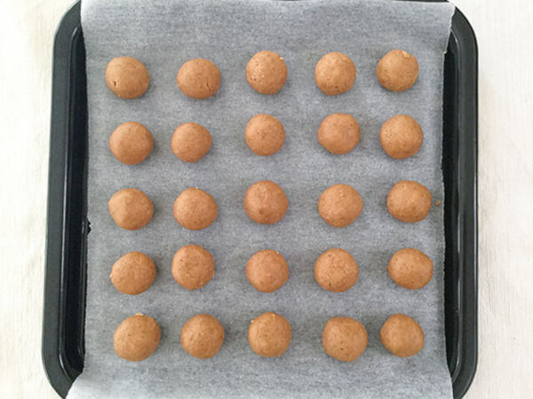3.生地を直径1.5cmくらいに丸めて、鉄板に並べ、170度余熱有りのオーブンで25分から30分焼きます。