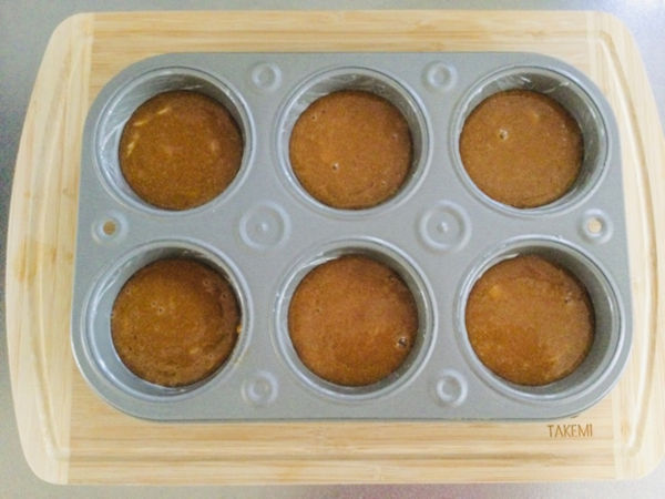 4.3の生地を入れて、170℃に予熱したオーブンで20分焼いて完成です。