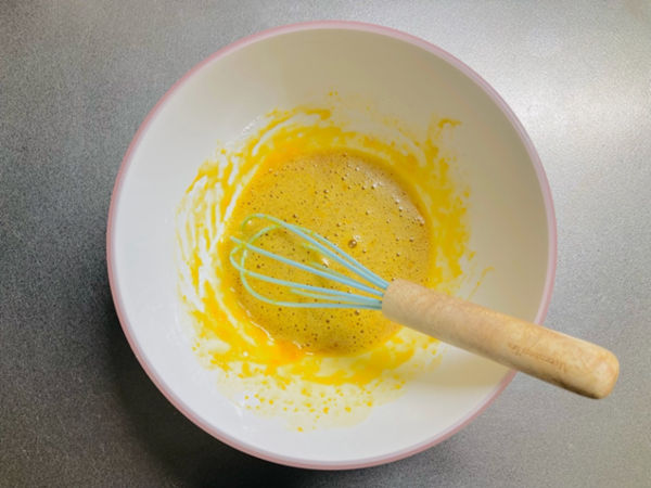 1.ボールで卵、メープルシュガーをよく混ぜ、さらに米粉を加えて混ぜます。