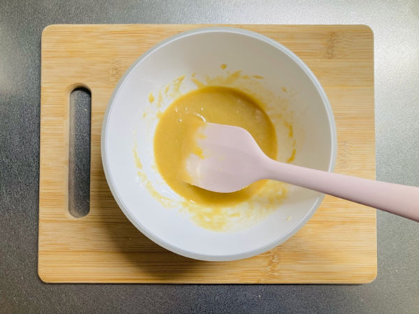 5.米油と豆乳を加えて混ぜ、最後にラム酒を加えて混ぜます。