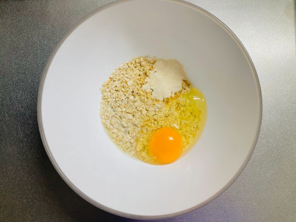 1.ボウルにオートミールと豆乳を入れて15分ほど置いてふやかします。