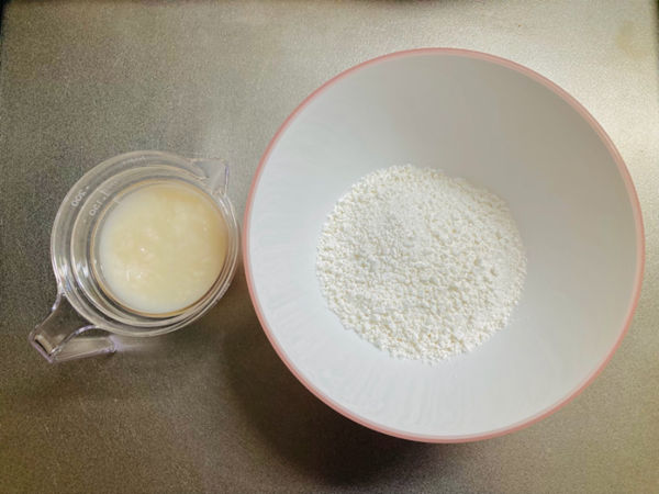 1.白玉粉に甘酒を少しづつ混ぜて練ります。