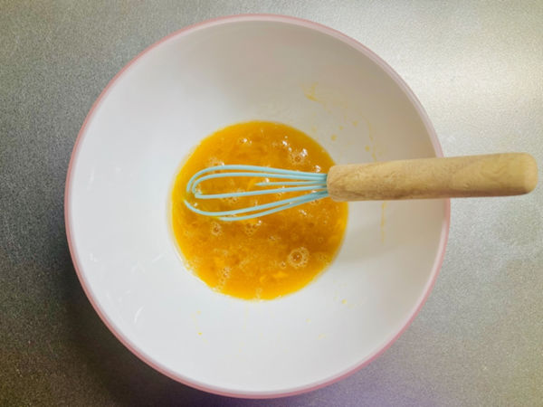 2.卵、メープルシロップ、米油を泡立て器でよく混ぜます。