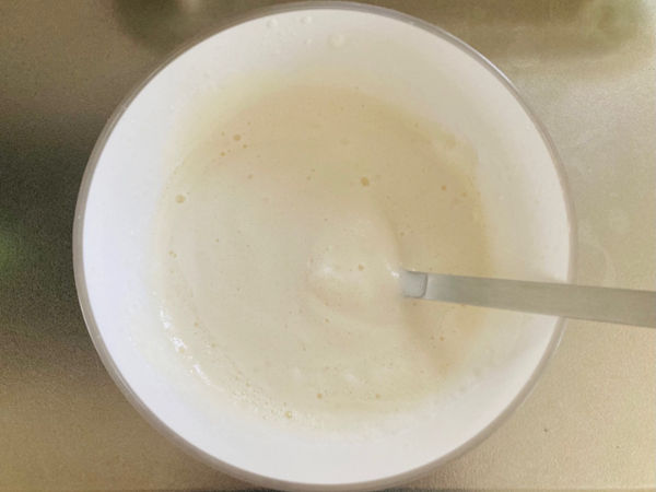 1.豆乳をボウルに入れ、泡立て器でよく混ぜて泡立てます。