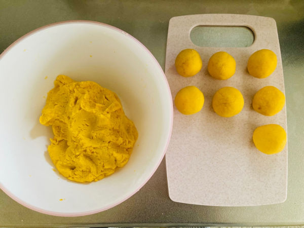 3.丸めるのにちょうどよい硬さになったら、食べやすい大きさに丸めます。