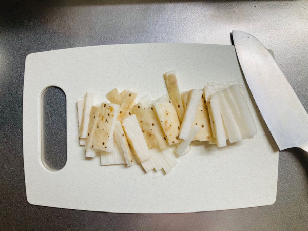 1.長芋は4~5cmの長さのスティック状にカットします。