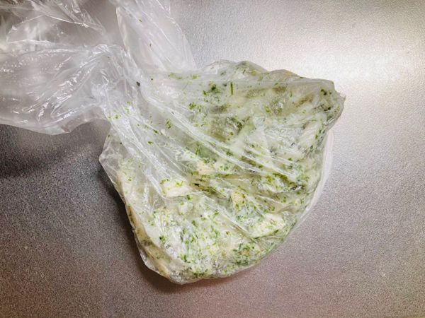 2.ポリ袋に米粉、片栗粉、青のり、塩を入れてよく混ぜ、その中に長芋を入れて全体に混ざるようにそっと揉み込みます。
