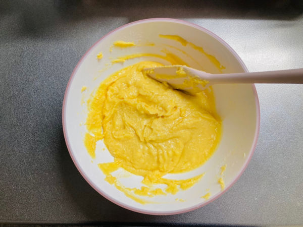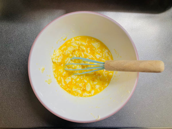 1.バターは溶かしておくか柔らかくしておきます。卵を溶きほぐし、甜菜糖を加えて混ぜます。