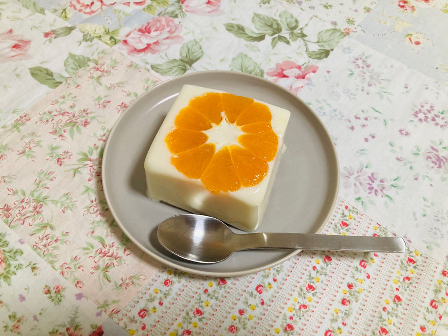 みかんは缶詰が使われることが多いですが、実を包む薄皮が薄いものであれば、生のみかんを丸ごと使っても美味しいです。